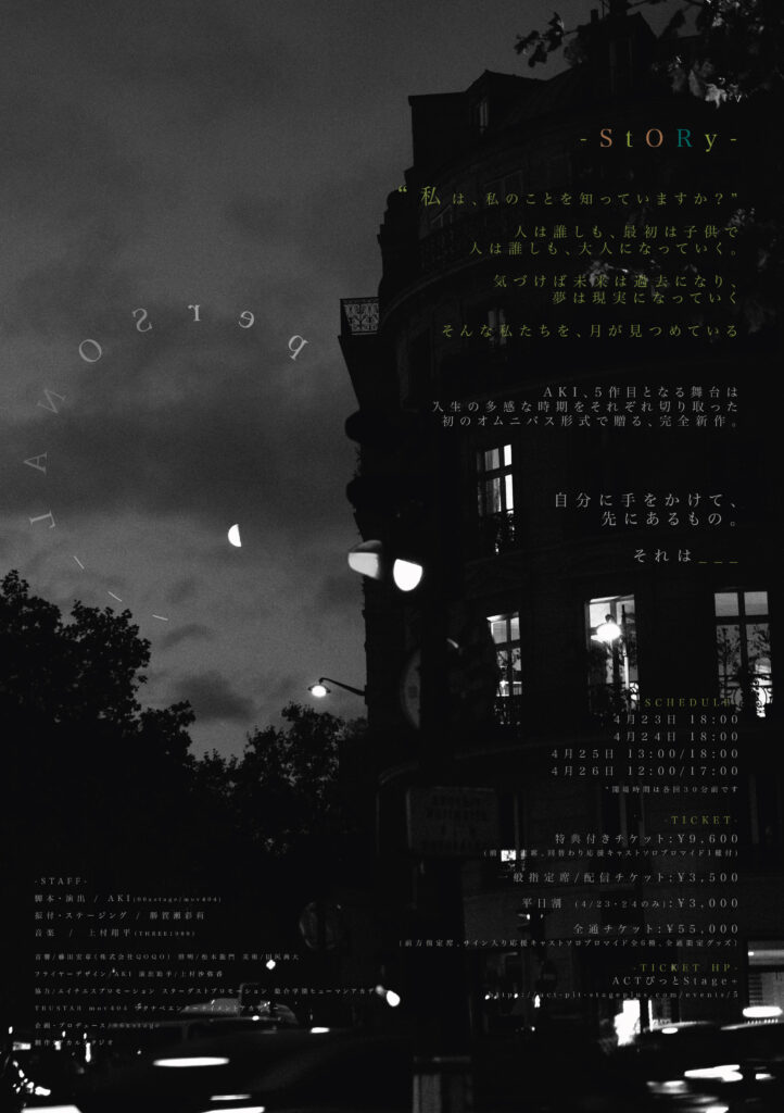 AKI 脚本・演出の舞台「perSONAL___」に出演いたします。